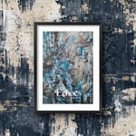 This print is reproduced from the original painted artwork, retaining the dynamic, painterly quality of the original. The distressed frame complements the colors and textures of the piece, giving it a finished, gallery-ready look.